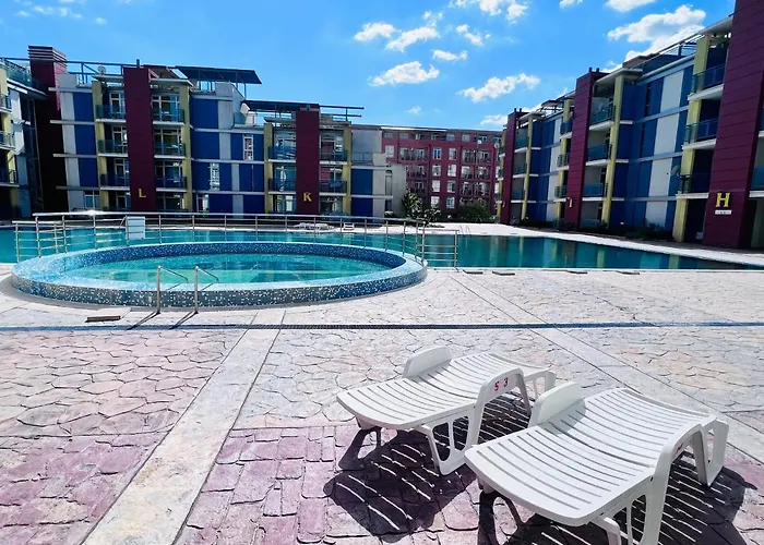 Spațiosul Elit 4 Apartments Sunny Beach cu 1 dormitoare situat în cartierul Sunny Beach Beachfront al orașului, la 25 de minute de mers pe jos de Poștă, oferă vedere spre piscină. Oaspeții se pot relaxa lângă o piscină înainte de a face o baie răcoritoare.